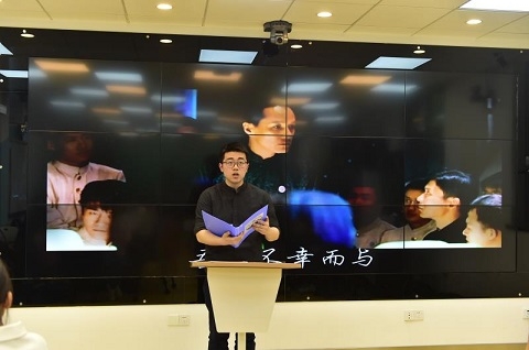 在“超越时空的青年对话”环节,2014级本科生刘承昊朗读了《复旦大学青运史》节选片段,启发同学们思考当代青年的时代责任和历史使命;通过与海外交流学生视频连线,引导全班同学思考“理想”的意义与价值。