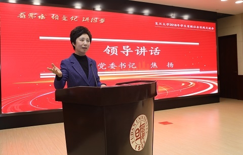 3月20日下午,复旦大学2018年学生寒假社会实践交流会在光华楼东辅楼102报告厅顺利召开。校党委书记焦扬、党委副书记许征、校长助理苟燕楠,学校相关部处负责同志和全校各院系两百余名师生代表参加了本次交流会。