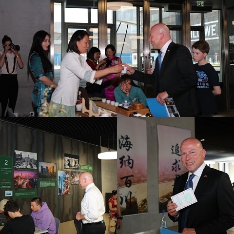 当天同时进行的还有孔子学院的第一次开放日活动。焦扬出席活动,并认真观看了上海图片展,在书法、茶艺、围棋以及中国民乐等的活动现场与参加开放日活动的卢森堡大学学生和卢森堡当地人一起体验孔院带来的中国文化氛围。