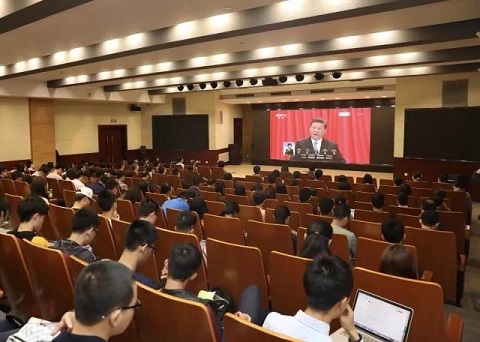 要把总书记今天的讲话同党的十九大报告和两天前总书记在北大师生座谈会上的讲话结合起来学习,进一步强化对马克思主义的理论真理和对党的基本理论的学习。正如总书记在北大师生座谈会上所讲,马克思主义是高校的政治底色,要通过学习,做一个坚定的马克思主义者,牢固树立做新时代中国特色社会主义的建设者和接班人的远大理想。