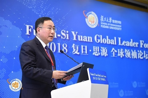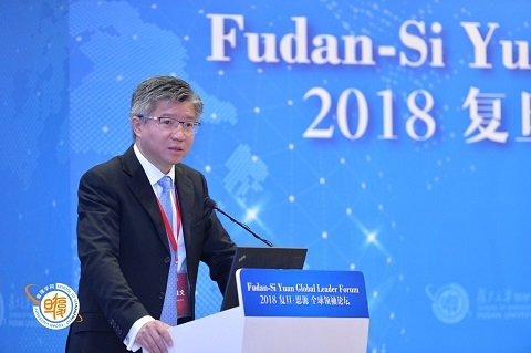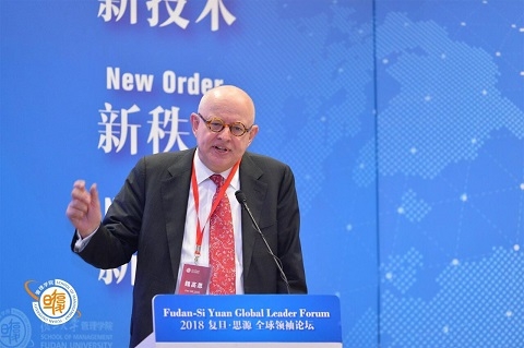 2018年5月18日,2018复旦·思源全球领袖论坛在复旦大学管理学院举行。本次论坛的主题为“新技术·新秩序·新时代”,原联合国粮食与农业组织助理总干事、深圳华大基因董事长特别顾问王韧,英国上议院议员查尔斯·鲍威尔,硅谷银行荣休主席魏高思,恒隆集团有限公司董事长、恒隆地产有限公司董事长陈启宗发表主题演讲并参与圆桌讨论。