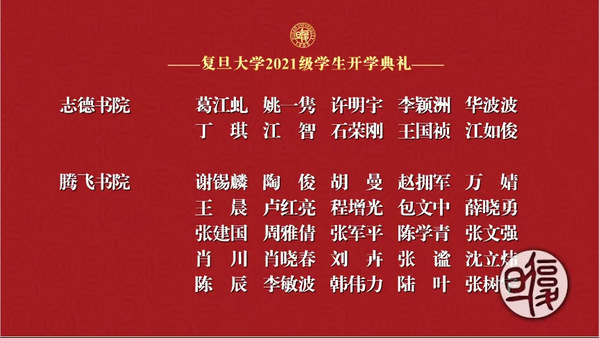 副校长张人禾宣读十佳“三好”导学团队获奖项名单,新生代表为2021年研究生十佳“三好”导学团队获得者献花。优秀榜样的力量,在新生进入复旦的第一刻便激励着新一代的复旦人们,不断进取,勇攀高峰。