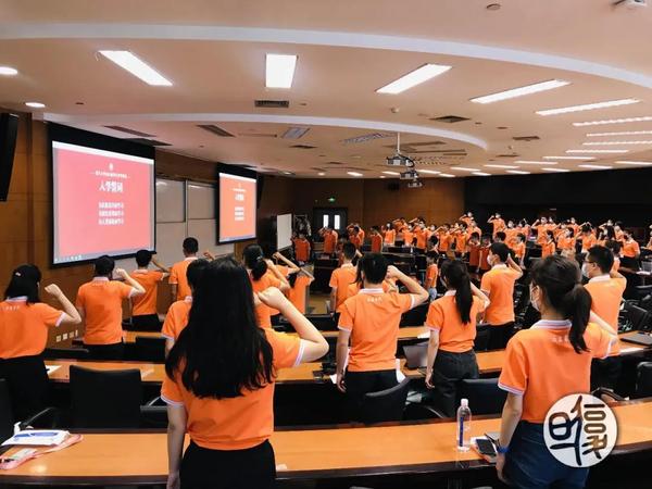鉴于疫情防控常态化要求,复旦大学本次采用线上线下相结合的方式欢迎新同学。本科生和研究生代表约2400人在正大体育馆现场参与典礼,其余新生在分会场观看直播。