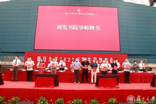 导师是同学们学习、研究、实践的护航者,也是复旦精神的守护者。副校长徐雷宣读书院导师名单,主席台嘉宾为导师代表颁发聘书。