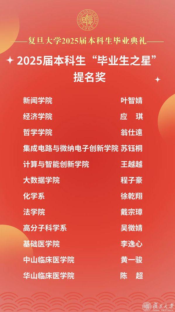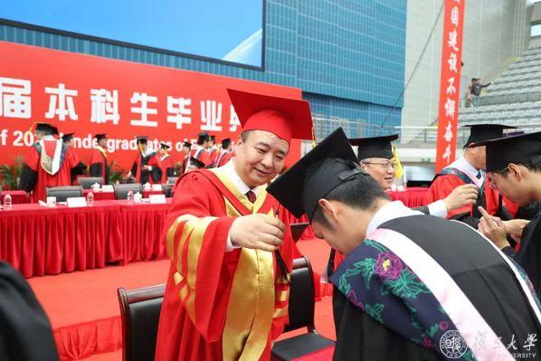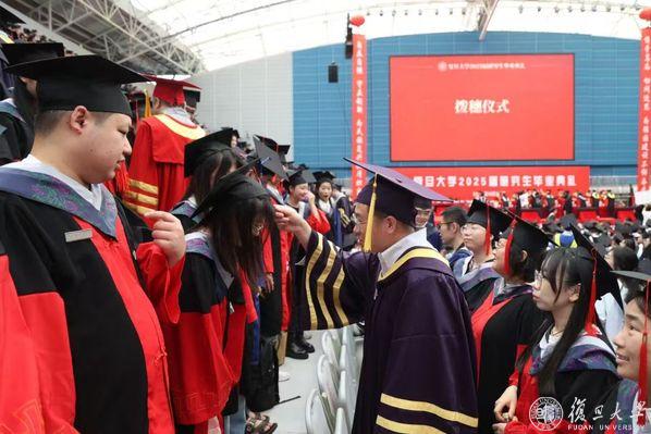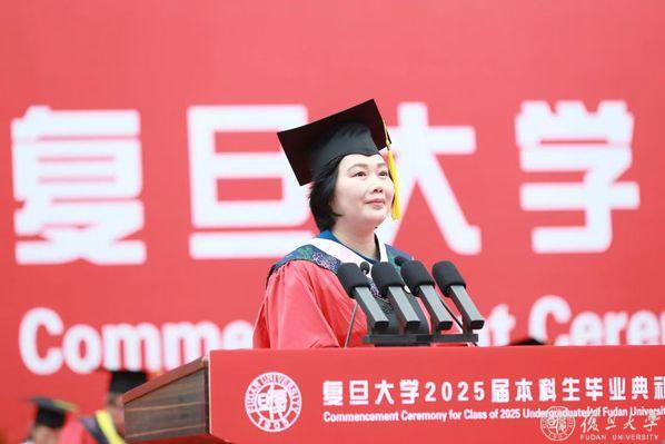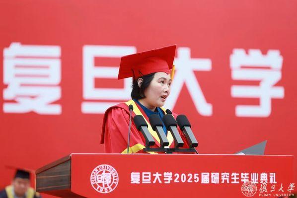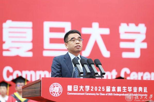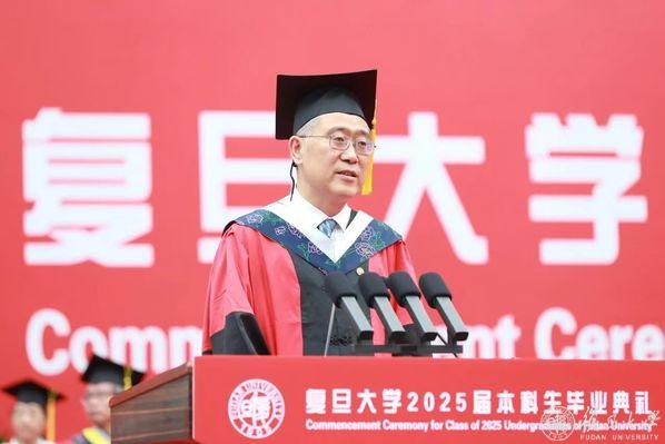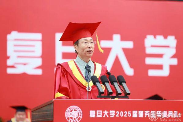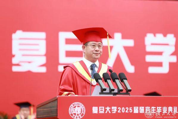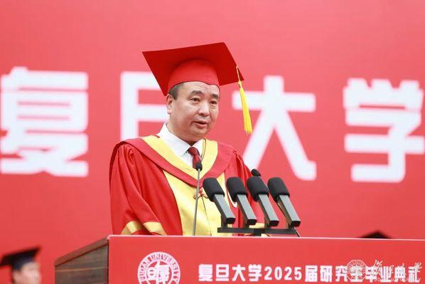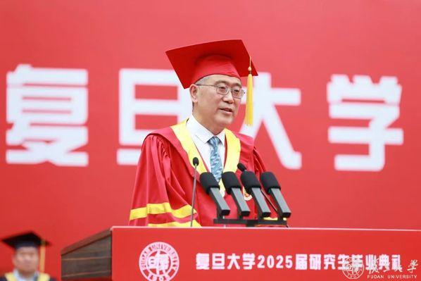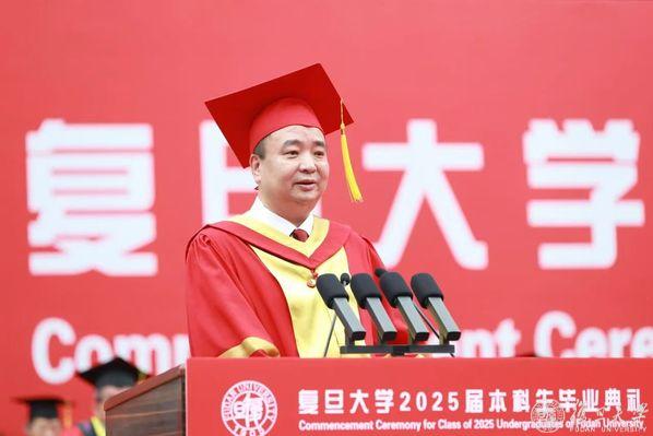 在启新程之际,他与大家共勉:做破局者,引领未来。面对百年变局,“不能被动应变,而要主动求变,引领变革”,以创新“立潮头,夺锦标”,“无论何行业都需拥抱最新科技,结合专业寻找新赛道,做新质生产力领跑者。做砺行者、生生不息。 他以复旦自身改革和“三轮车夫蔡伟”成为教授为例,激励大家将压力变动力,“干就干得漂亮,活就活得精彩”,像干细胞般分化出无限可能,即使做“螺丝钉”也要做闪亮的“复旦牌”螺丝钉。做智慧者,奔赴天地。 他比喻毕业是探索“人生旷野”的通行证,呼吁无论何往需葆有“板凳要坐十年冷”的定力和实干精神,扎根中国,学以致用,贡献“复旦智慧”。引用裘锡圭先生的话作结,他说:“抓紧时间,克服困难,为祖国为人民作出与时代相称的好成绩来。”