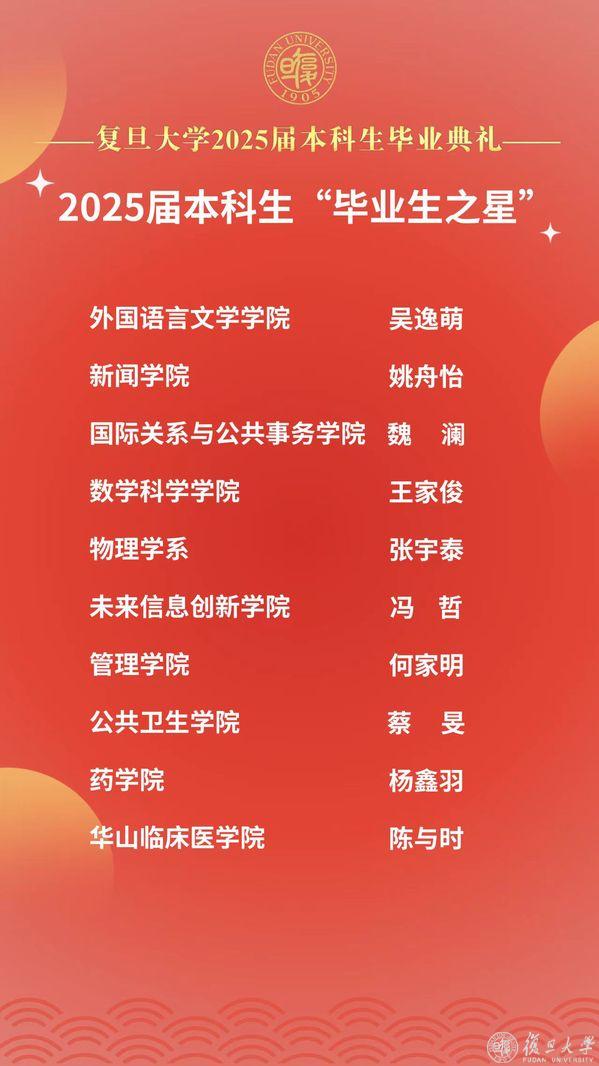 上午9点,复旦大学2025届本科生毕业典礼举行。复旦大学校长、中国科学院院士金力等学校党政领导,教师代表,校友代表,各院系党政负责人,机关部处负责人,毕业生家长代表等送别2025届全体本科毕业生。典礼由复旦大学常务副校长许征主持。