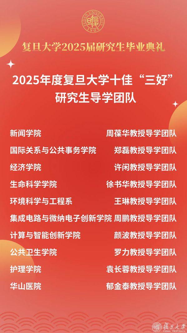 校党委副书记周虎宣读2025年复旦大学十佳“三好”研究生导学团队名单