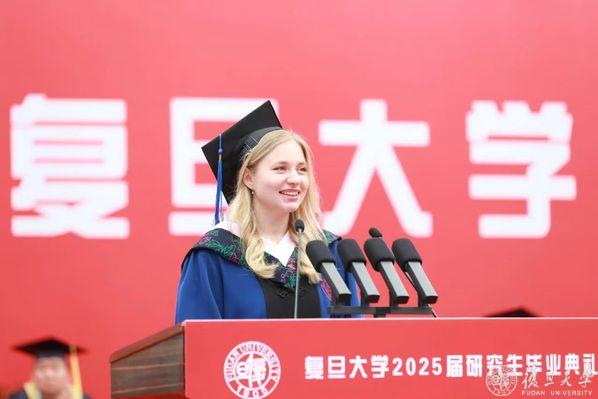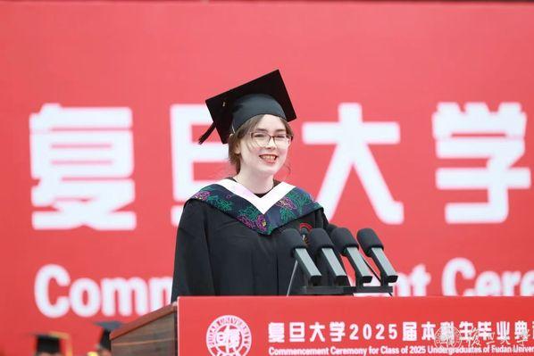“从多瑙河畔来到黄浦江边,复旦为我打开了真正通往世界的窗。”国际关系与公共事务学院学院2025届本科毕业生、来自斯洛伐克的韦丽娅表示在复旦首先学到的,是做一名卓越的人。在学校经常被各国朋友问关于斯洛伐克文化的知识的她,萌生把家乡文化讲给更多人听的想法。于是,她和来自印度尼西亚和津巴布韦的朋友一起报名参加全国高校学生跨文化能力大赛,斩获特等奖。比赛之外,她还参加学院主办的YICMG,和团队成员一起挑灯夜战筹备赛事。在复旦还学到,要做一名“有趣”的人。歌王争霸赛、厨王争霸赛……复旦人独有的浪漫为她在上海的留学生活增添美好回忆,让大学生活变得难忘又精彩。在复旦学到的最重要的一点,是要做一名对人类、对社会有用的人。毕业后,她将投身跨文化交流领域,用斯洛伐克语、汉语、英语、阿拉伯语搭建中外沟通的桥梁。“这是复旦毕业前交给我的最后一课:责任与担当。”最后,韦丽娅斯用洛伐克语深情告白学校:Ďakujem,Fudan(谢谢复旦)!