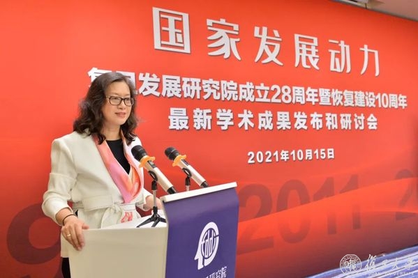 焦扬首先向为发展研究院发展壮大作出贡献的各位专家学者和出色的工作团队,表示衷心感谢。她指出,自2011年恢复运营以来,发展研究院聚焦中国发展研究,以学科深度融合为动力、以统筹管理孵化为延伸、以高端学术运营为特征,凝聚服务专家学者,逐步探索形成了被新华社誉为“小机构大平台”的智库运营模式,为党和政府决策提供了有力支持,为国家改革发展稳定作出了重要贡献,为全校智库树立了标杆,也积累了宝贵经验和精神财富。28年的探索弥足珍贵,形成了敢闯敢试、敢为人先的“首创”精神,为党咨政、为国建言的“报国”传统,面向世界、海纳百川的“开放”品格,我们要倍加珍惜、长期坚持。