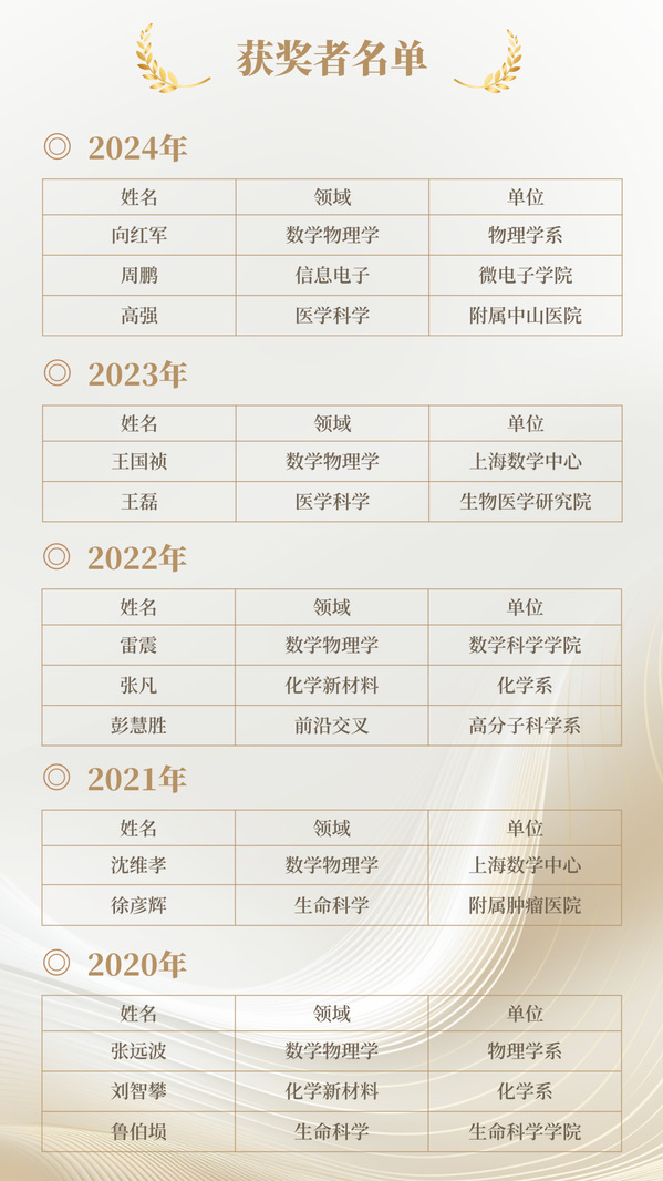 “科学探索奖”于2018年发起至今,始终秉持“面向未来、奖励潜力、鼓励探索”的宗旨。2020年至2024年已有13位复旦人凭借其各自领域的贡献,与“科学探索奖”同行。