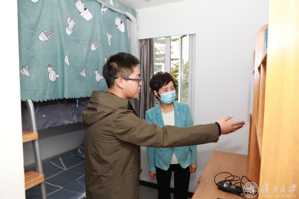 焦扬询问了王麒淦学业情况,王麒淦说:“信息学院的课程我都很喜欢,也非常喜爱自己所学的专业,但是现在课程中编程相关的内容比较多,因为读大学以前没接触过,所以学习过程中有些困难。”了解到他的困惑后,焦扬勉励他不耻下问,刻苦努力,因为学习没有捷径,学生主业是学习,在此基础上,可以积极参加一些有意义的活动。同时,她叮嘱学院和辅导员要给予更多关心。焦扬还鼓励他,积极向党组织靠拢,与老师们和同学们多汇报、多交流。迟楠也对他的学习情况表示关心,叮嘱要抓紧复习,有什么困难可以随时来学院找老师。