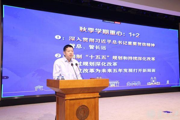 金力指出,新学期工作的重点布局是“一个中心、两个基本点”,以贯彻落实习近平总书记重要贺信精神为中心,高质量编制“十五五”规划,高质量落实教育科技人才一体改革。规划编制和改革落实的主战场都在二级单位,都要依靠校院联动。