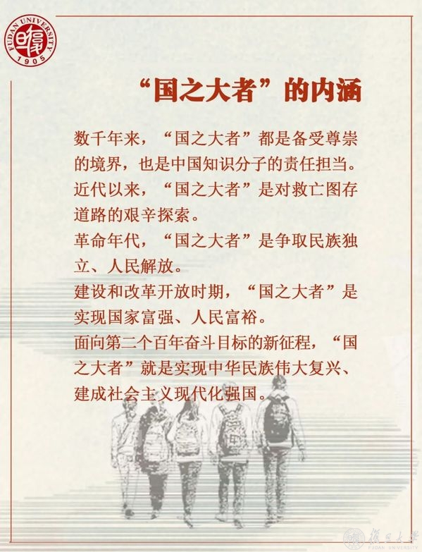 在复旦亲历新时代浪潮的毕业生们给出见解。社会发展与公共政策学院邱子舒说:“‘国之大者’取自百姓,每一个体都有对于美好生活的期盼和希望,它们汇聚的主旋律就是‘国之大者’。”化学系博士毕业生朱嘉星说:“在自己研究的科研领域精耕细作,攻克一批卡脖子问题,为国家基础科学研究贡献自己的一份力量就是‘国之大者’于我的重要意义。”
