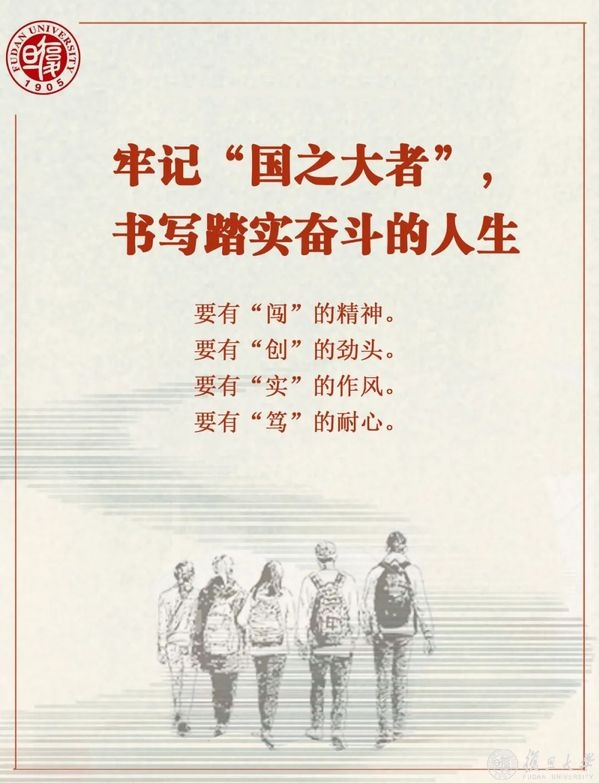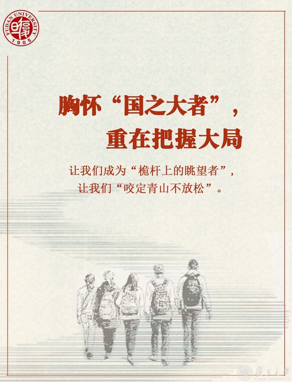 要有“笃”的耐心——新到岗位,工作往往从最简单琐碎的事开始。在困难的时候,大家多想想复旦校训中“笃志”的道理,笃志弘毅、砥砺前行。