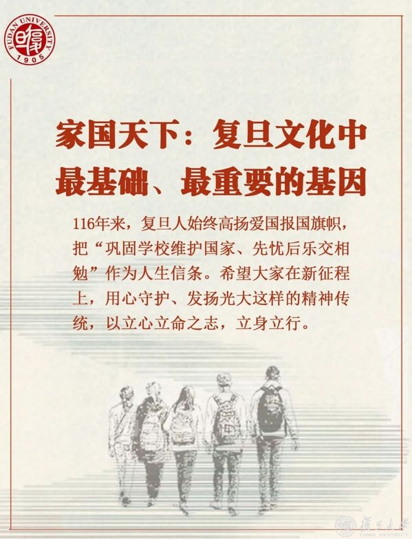 116年来,复旦人始终高扬爱国报国旗帜,把“巩固学校维护国家,先忧后乐交相勉”作为人生信条。“复旦人有家国天下、自强不息、求索真理、开放创新的基因。其中,家国天下是最基础、最重要的基因。”焦扬希望毕业生们在新征程上,用心守护、发扬光大这样的精神传统,立身立行。