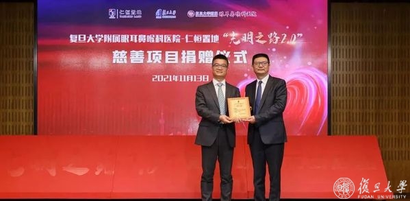 11月13日上午,复旦大学附属眼耳鼻喉科医院-仁恒置地“光明之路2.0”慈善项目在复旦大学附属眼耳鼻喉科医院正式启动。复旦大学党委书记焦扬,仁恒置地集团董事局主席兼总裁钟声坚,复旦大学上海医学院副院长汪志明等出席仪式。