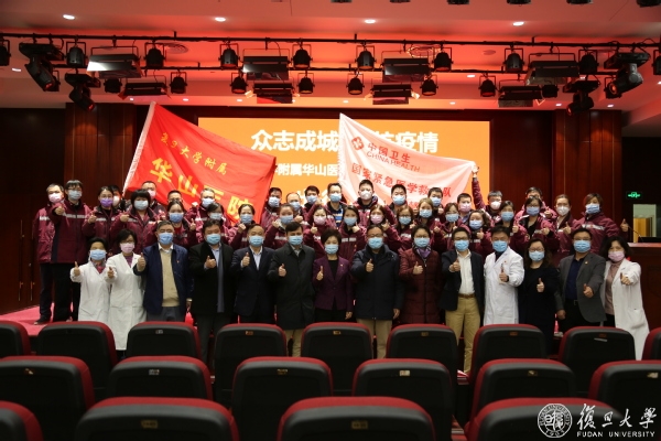 复旦大学常务副校长、上海医学院院长桂永浩,复旦大学党委副书记、上海医学院党委书记袁正宏,上海医学院党委副书记张艳萍,上海医学院副院长毛颖及华山医院党委书记邹和建、院长丁强等领导班子成员、科室领导、科室同仁全都赶来为勇士们“壮行”。
