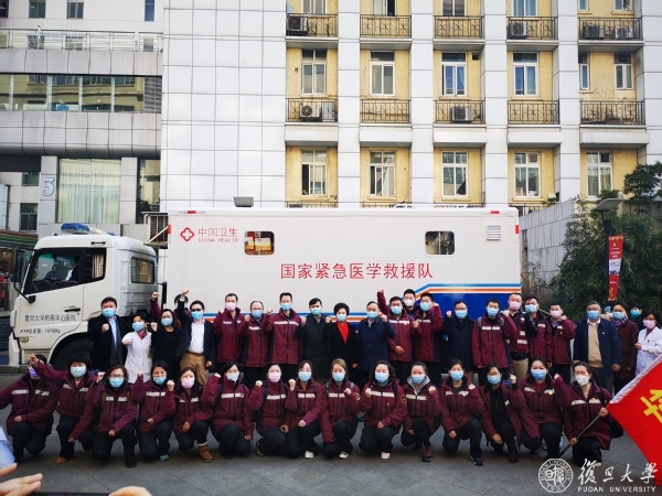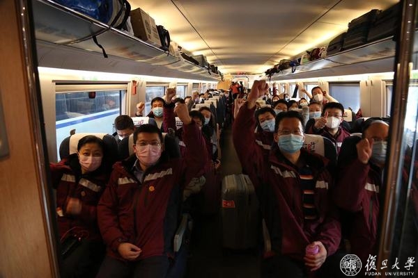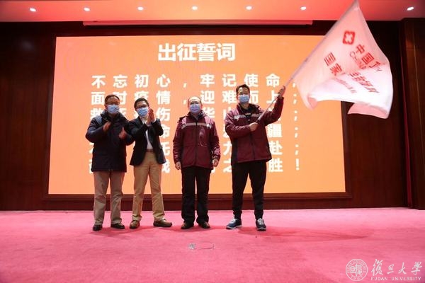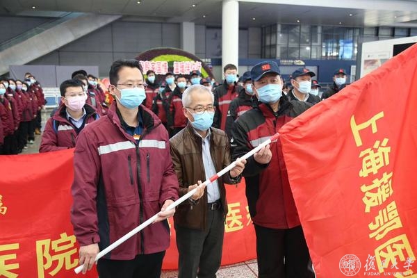 “在祖国和人民需要的时候,你们挺身而出,向你们致敬!”“希望你们不忘初心,让党旗在抗疫一线高高飘扬,同时也一定做好自我防护。”“你们的家人,学校党委、医学院党委、医院党委都会关心好,请大家放心!”“我们在上海,盼你们早日凯旋!”校党委书记焦扬代表复旦大学党委、全体师生向这支英勇的队伍致以崇高的敬意和衷心的祝福。