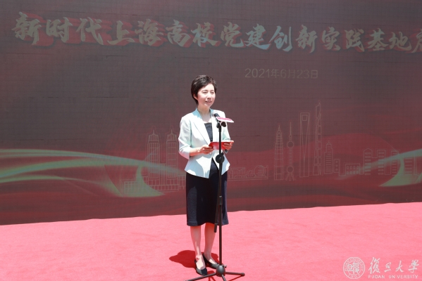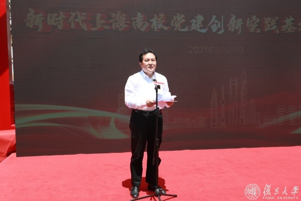6月23日下午,新时代上海高校党建创新实践基地启用仪式在复旦大学举行。校党委书记焦扬,上海市委组织部副部长、市社会工作党委书记孙甘霖,上海市教卫工作党委书记沈炜、副书记滕建勇,校党委副书记、副校长周亚明出席并共同上台启动新时代上海高校党建创新实践基地。各高校党委分管组织工作副书记、上海市教卫工作党委、市教委机关有关处室负责人,复旦大学有关部门负责人、党务工作者和党员代表出席启用仪式。