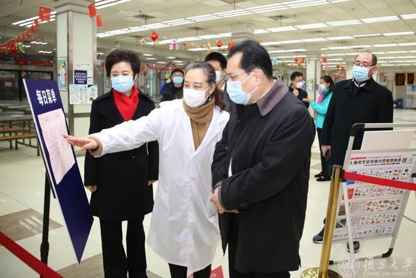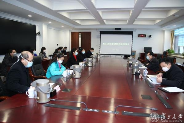 2月14日上午,上海市教卫工作党委书记沈炜一行来到复旦大学,调研检查学校疫情防控落实情况,并主持召开座谈会。复旦大学党委书记焦扬,校领导许征、尹冬梅、周亚明、张志勇等参加座谈会。