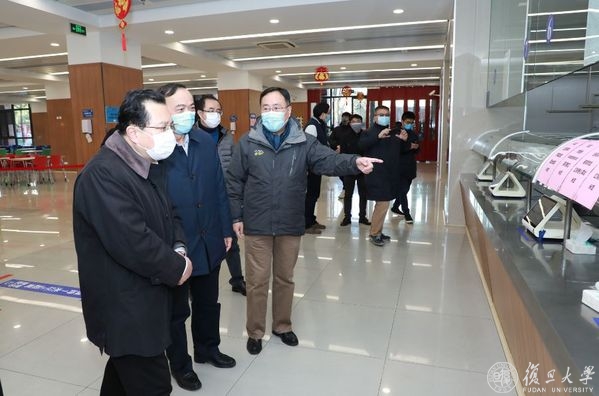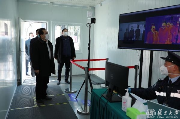 沈炜一行先后来到东安路130号复旦大学上海医学院正门、食堂、学生公寓楼西楼、监控预警指挥中心和P3实验室,依次查看上海医学院快速测温设备运行和出入口管理情况,检查食堂、学生宿舍楼防控管理情况,查看实时监控情况,并关心上海医学院科研攻关情况。