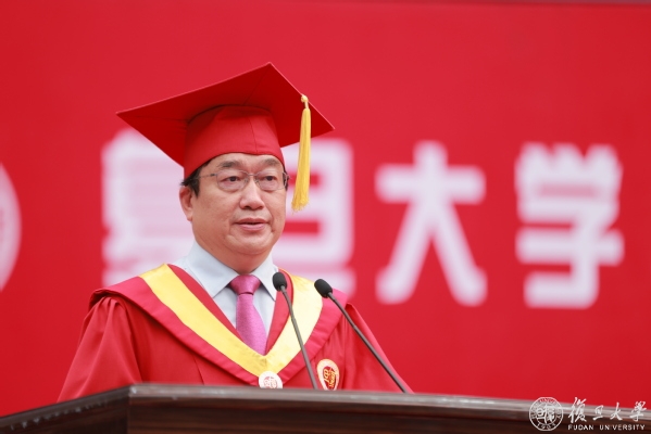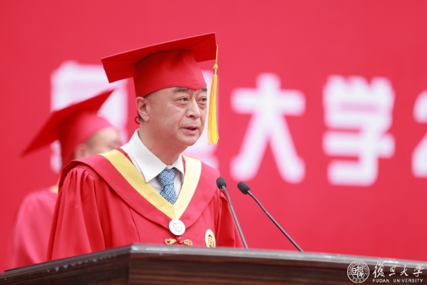 许宁生代表学校为同学们送上祝福。一是胸怀全球,树立远大目标。要对标高质量发展要求和人类命运共同体愿景,站在更高层次的历史方位上定位自身发展。大格局才有大作为,希望同学们今后不论身处何方、从事何种职业,都要树立大志、把握大势,从更宏大的视野和宽广的格局去思考、解决问题,从推动人类社会共同发展进步的角度去定位自身发展,积极履行社会责任与使命。二是永远追求卓越,勇攀创新高峰。一直以来,复旦人始终站在时代潮流前沿,敢为人先,敢于突破,以聪明才智贡献国家,以开拓进取服务社会。希望同学们常怀创新意识,提升创新能力,勇于攻克关键核心技术,敢闯创新“无人区”,开拓新领域争第一,做掌握未来、引领未来的顶尖人才。三是主动担当贡献,服务国家民族。有越来越多的毕业生主动投身西部建设、投身重点领域和重点行业,在最美的青春年华里扎根祖国和人民最需要的地方,在奉献家国的强国梦中书写奋斗华章。希望大家扎根社会、扎根人民,以所学服务社会,无畏艰难困苦,在实干中成就一番事业。
