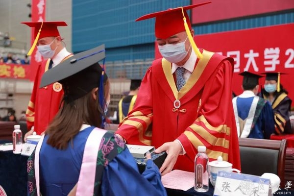 2021届研究生即将踏上人生的新征程。复旦大学在各行各业的优秀校友为大家树立了榜样。校友代表、中国石化高级专家、全国劳动模范、复旦大学1996届化学系校友缪长喜以“立一域,为全局”为主题与大家分享成长感悟。他强调,科研并不只是穿着白大褂在实验室,深入一线、把论文写在大地上也是科研的重要内容;不求名利,不求闻达,用行动热爱祖国才是圆梦的方式;希望大家面对人生曲折,用坚忍成就伟大;将个人融入团队是一个人成功的关键密码。“不论大家将来在哪个领域工作,愿你们在以后的人生道路上,始终心怀‘国之大者’,在建设国家和满足人民对美好生活向往的新征程上贡献出更多的复旦智慧和力量。”