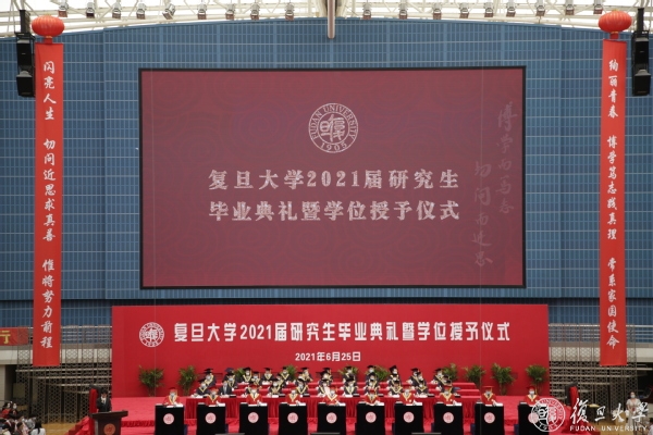 与祖国同行,与时代同行。6月25日下午,复旦大学2021届研究生毕业典礼暨学位授予仪式在正大体育馆隆重举行。校长许宁生等学校党政领导,校学位委员会委员、研究生导师代表,部分机关部处和各院系负责人共同见证5000余名2021届研究生毕业。毕业典礼由常务副校长金力主持。