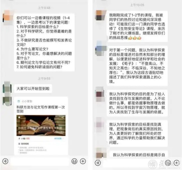 生命科学学院卢宝荣老师在《科研方法与科学论文写作》课堂上组织在线讨论