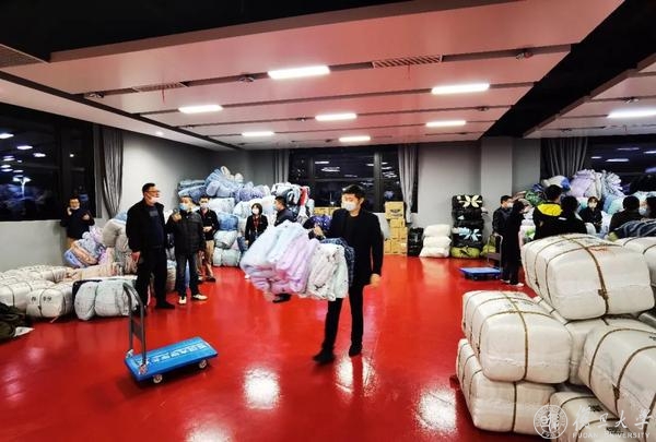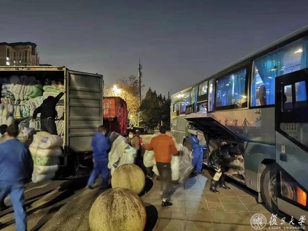 从未歇步——当一车车物资运达临时安置点是各院系领导、教师志愿者冲锋在前,卸载运送餐食、被褥、生活用品等解决同学急难愁盼。