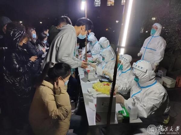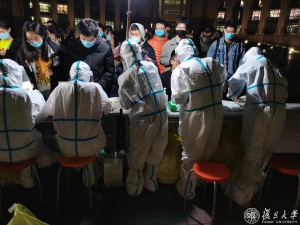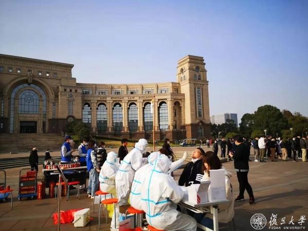 踏实做事,严谨治学——复旦学风一如既往,室外,核酸检测正有序开展,楼内,同学自习身影秩序如常。