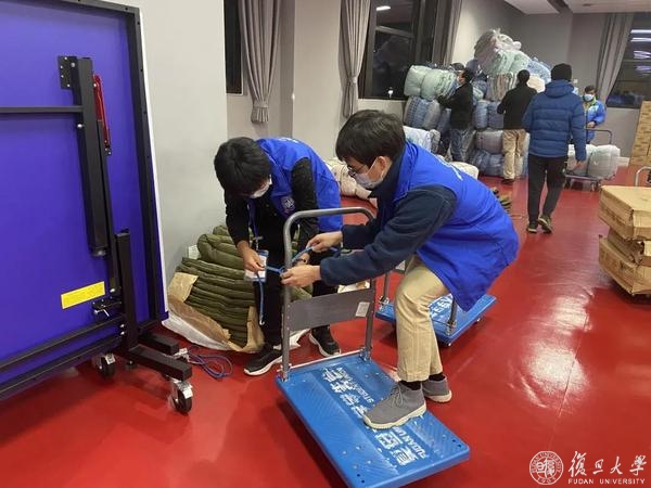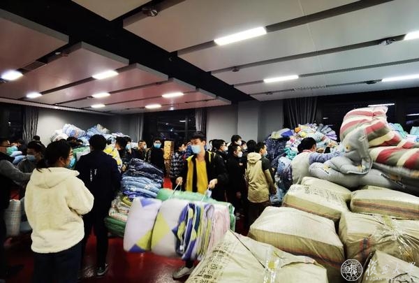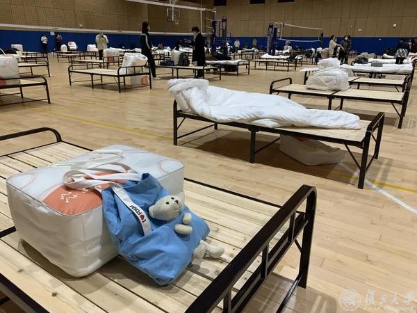 搭好被窝,温暖心窝,物业、班车、基建工人分工负责。与党员志愿者一起,为师生的一夜安睡助力。