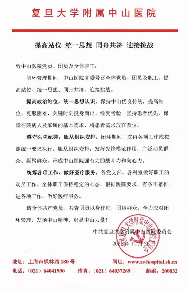 医院领导班子全员深入一线,抵前指挥。医院还对党员、团员和全体职工发出了“提高站位,统一思想,同舟共济,迎接挑战”的号召。