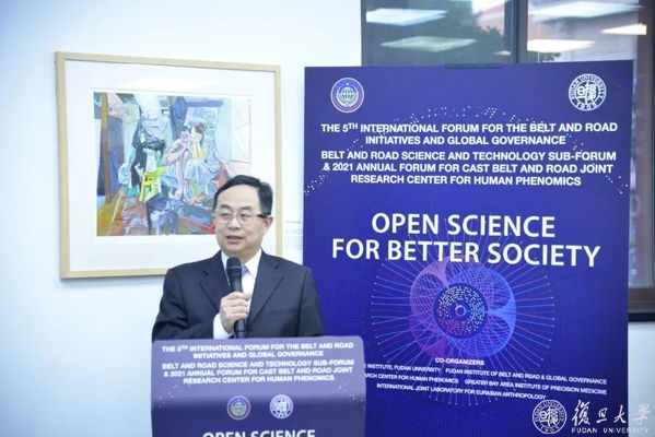 11月28日下午,以“开放科学,用科学造福社会”(Open Science for Better Society)为主题的第五届“一带一路”与全球治理国际论坛科技分论坛暨中国科协一带一路人类表型组联合研究中心年会于复旦大学智库楼举办。