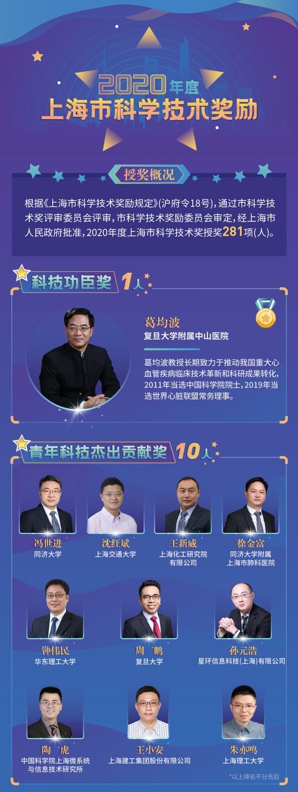 其中科技功臣奖1人,为附属中山医院院士葛均波。青年科技杰出贡献奖1人,为微电子学院教授周鹏。