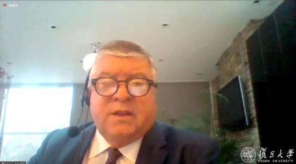 焦扬指出,“一带一路”已成为当今世界重要的国际公共产品和国际合作平台,塑造了全方位对外开放的大格局,推动制度型开放、广泛构建朋友圈、探索促进共同发展的新路径,取得了实打实、沉甸甸的成就。面对新冠疫情肆虐,“一带一路”为中国与带路沿线国家守望相助、共克时艰发挥了重要作用,为全球抗疫合作和经济复苏作出巨大贡献。一年来,复旦一带一路及全球治理研究院紧紧围绕疫情形势下的“一带一路”高质量发展,在理论创新上发力、在教育合作上赋能、在研究领域上开拓、在服务发展上布局、在成果传播上出新。