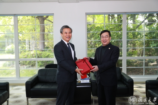 4月15日上午,大韩民国驻沪总领事金胜镐一行访问复旦大学。许宁生校长会见了代表团一行。