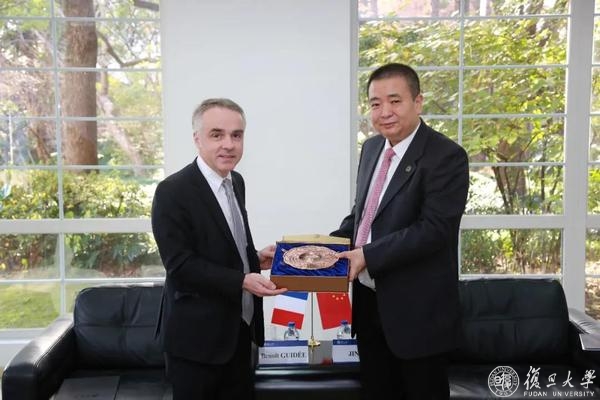 12月17日上午,法国驻沪总领事纪博伟一行访问复旦大学。校长金力会见了纪博伟一行。