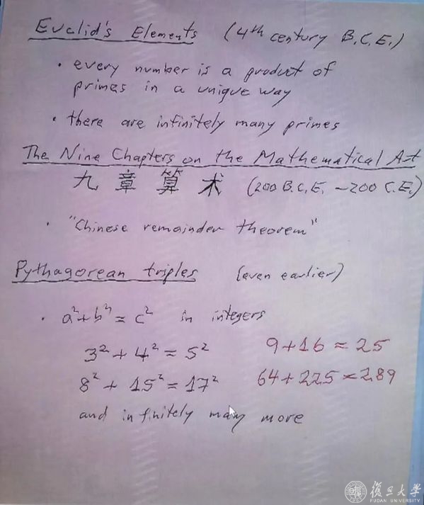 一支笔,一叠纸,纸上整齐的用汉字写着“九章算数”,旁边是密密麻麻但清晰可见的行行数学公式,领奖台中央,唐 · 查吉尔——2021年“复旦-中植科学奖”得主正在尝试通过古老中国的九章算术将古老而美丽的数论讲给台下的人,所展现的热情和兴奋,让你很难看出,他已经70岁了。