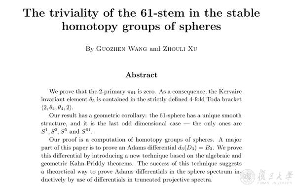 王国祯与合作者解决61维球面微分结构唯一性论文