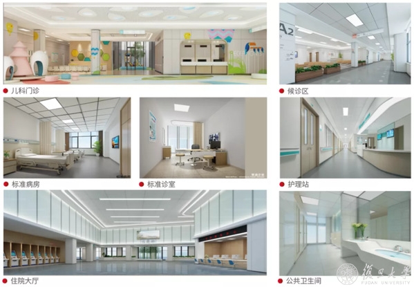 新院区的设计和建设充分体现了两院悠久的合作历史,体现了两院融合的医院文化。院内导视系统以红、黄、蓝三种色块为主,其中红色是“华山红”,蓝色则是“附一蓝”。