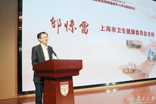 邬惊雷在讲话中指出,华山医院在服务国家战略、提升整体医疗水平、改善患者体验过程中作出了重要贡献。此次北院整体并入是市委市政府贯彻落实中央决策部署,以大胸怀、大格局推动深化改革,优化医疗的重大战略布局,期望历来有“大担当”的华山医院继续发挥引领作用,大力发扬“华山一条路”的精神,统筹优势资源、探索体制机制创新,推进多院区协同发展模式,在医疗技术、科技创新、服务能力等各方面勇攀新的高峰,提升带动北上海卫生健康服务能级,为建设人民城市、保障人民健康再作贡献。