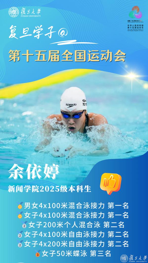 现在,让我们一同回顾复旦健儿们在十五运会上的拼搏征程与优异成绩,点亮这份属于复旦人的“高光时刻”!