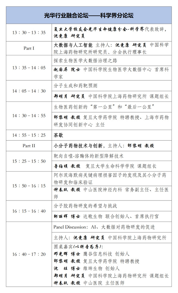 当天下午举行了光华行业融合论坛。论坛邀请来自生命健康领域的科学界、医疗界、产业界的优秀人才共同探讨中国生命健康领域科技“源头创新”、“未来发展”的新思路、新问题和新答案,力争形成“复旦范式”。