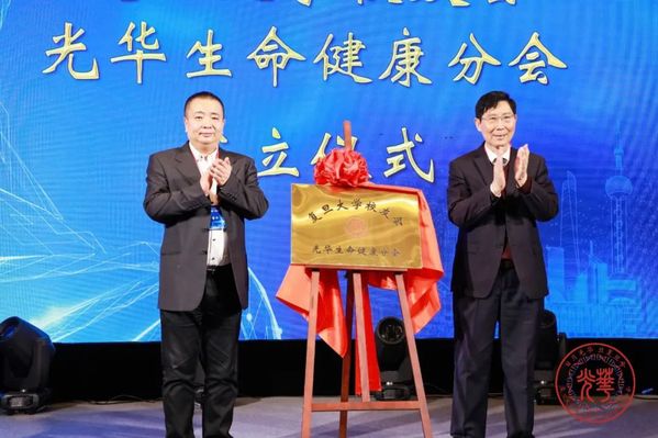 金力、 陈凯先共同为复旦大学校友会光华生命健康分会揭牌