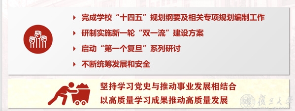 以学习教育开新篇,完成学校“十四五”规划纲要及相关专项规划编制工作,研制实施新一轮“双一流”建设方案,以高质量学习成果推动高质量发展。
