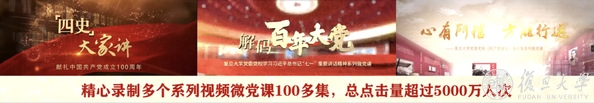 培根铸魂、启智增慧。为了上好百年党史这堂“大思政课”,引领广大师生赓续红色基因、筑牢信仰之基,复旦大学将开展党史学习教育同深入学习贯彻总书记重要回信精神相结合,紧扣时代主旋律、育人大课堂、奋斗大舞台,实施“党旗领航·铸魂育人”项目,以党建领航思想政治教育、领航教师教书育人、领航教育教学改革,完成“四史”微课程、红色资源库、支部生活案例、主题党日方案、精品教材、课程思政教学案例、实践育人基地等党建思政“7个100”系列建设任务。