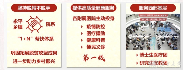 改革发展谋实招、三全育人见实效、科研攻关创实绩、资政为民献实策、救死扶伤建实功、报国成才求实学、服务师生增实惠,七类实践活动中,党员们奋勇争先,让“党员先上”的标识更鲜亮,广大师生、医务人员、管理服务人员也被带动起来,投身学党史、悟思想、办实事、开新局的热潮。