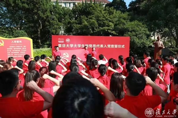 6月22日,包括他在内的100名复旦大学生新党员齐聚《共产党宣言》展示馆,在新落成的陈望道雕塑前,面朝党旗庄严宣誓。