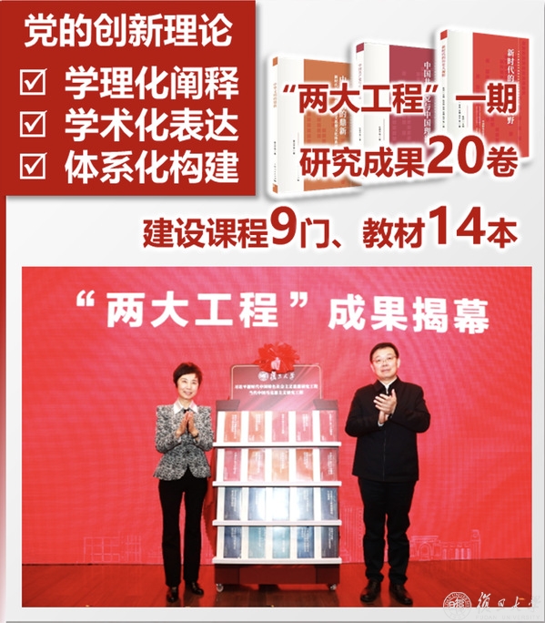 高质量的宣讲需以扎实的理论研究为基。2021年近尾声之际,复旦大学也交上了一份厚重的理论答卷——“习近平新时代中国特色社会主义思想研究工程”和“当代中国马克思主义研究工程”(简称“两大工程”)一期20本著作集中发布,并同步向育人工程转化,启动建设课程9门、教材14本。